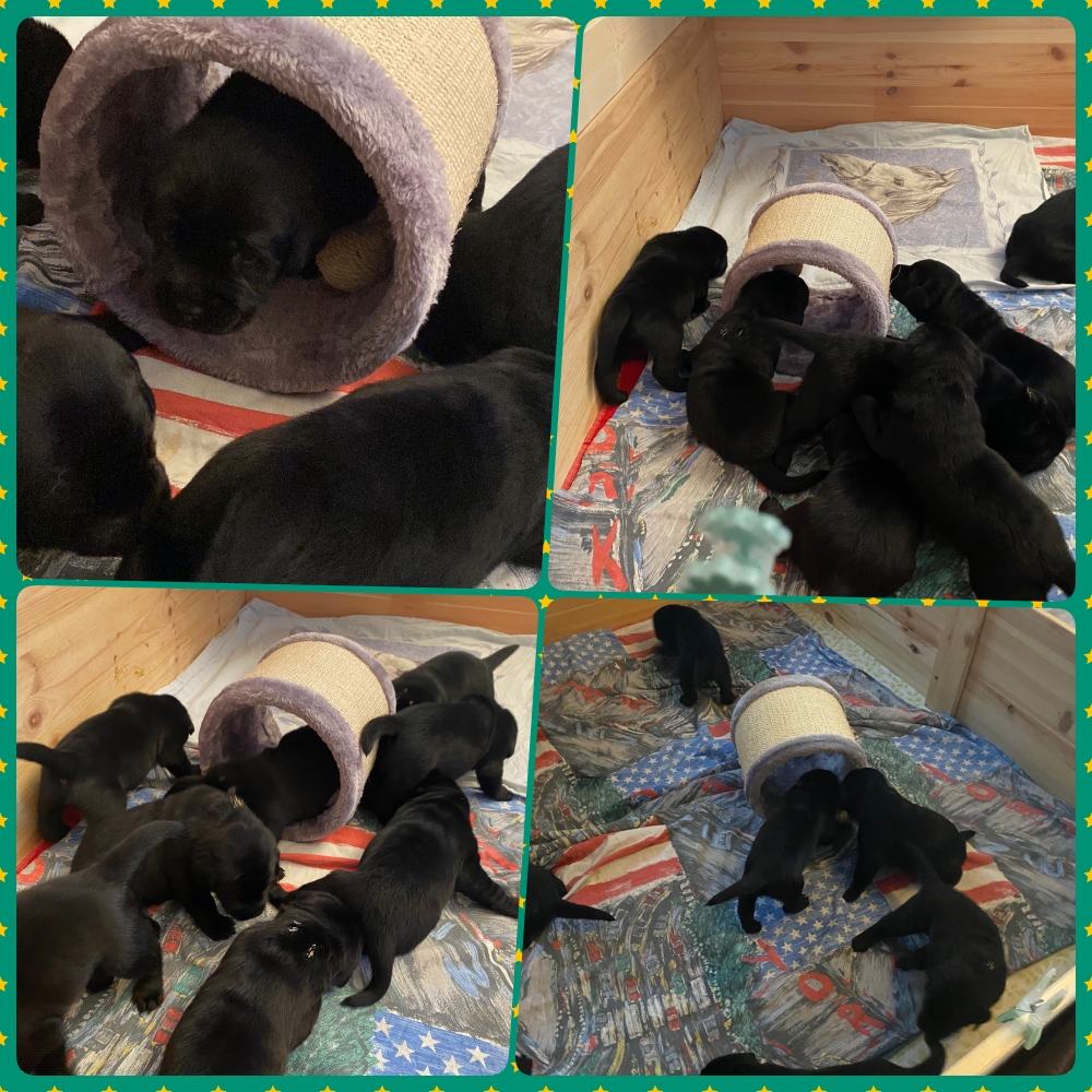 Wir haben diese ersten Wochen wie immer sehr genossen und das Beste getan, den Bedürfnissen und dem Unternehmungsgeist der Welpen gerecht zu werden. Gut gerüstet werden sie ihren Weg machen!