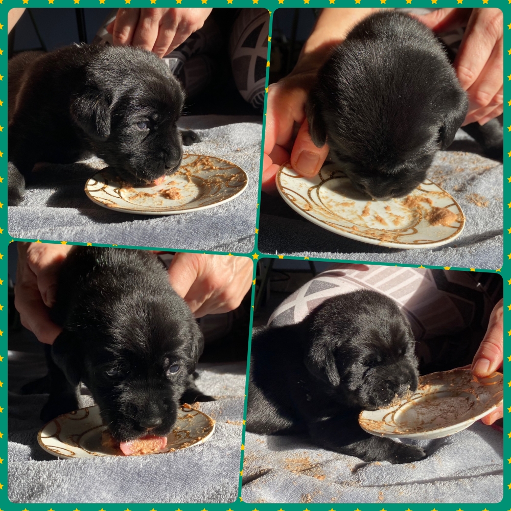 Erstes Fleischmus – es wäre kein Labbi, wenn es nicht schmecken würde!