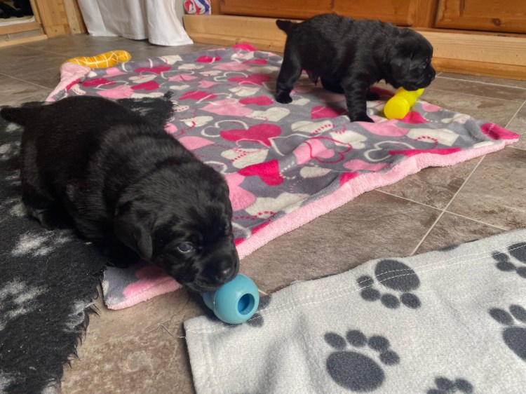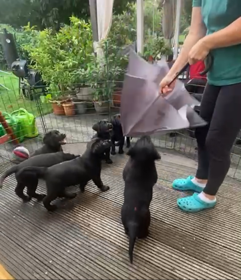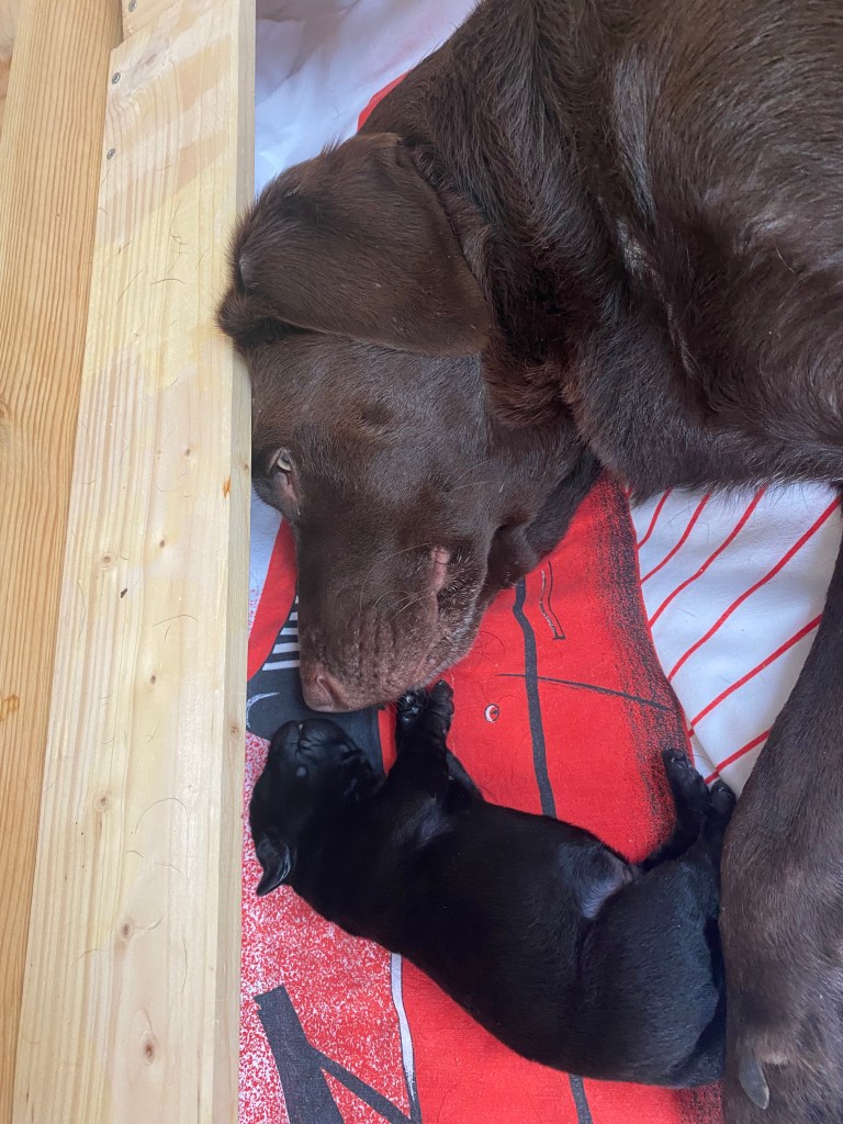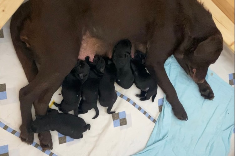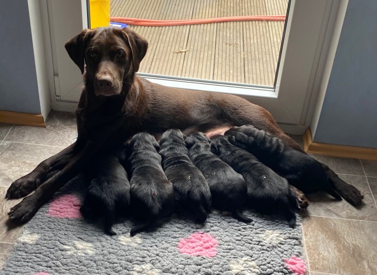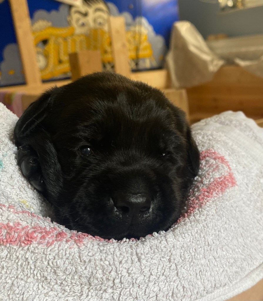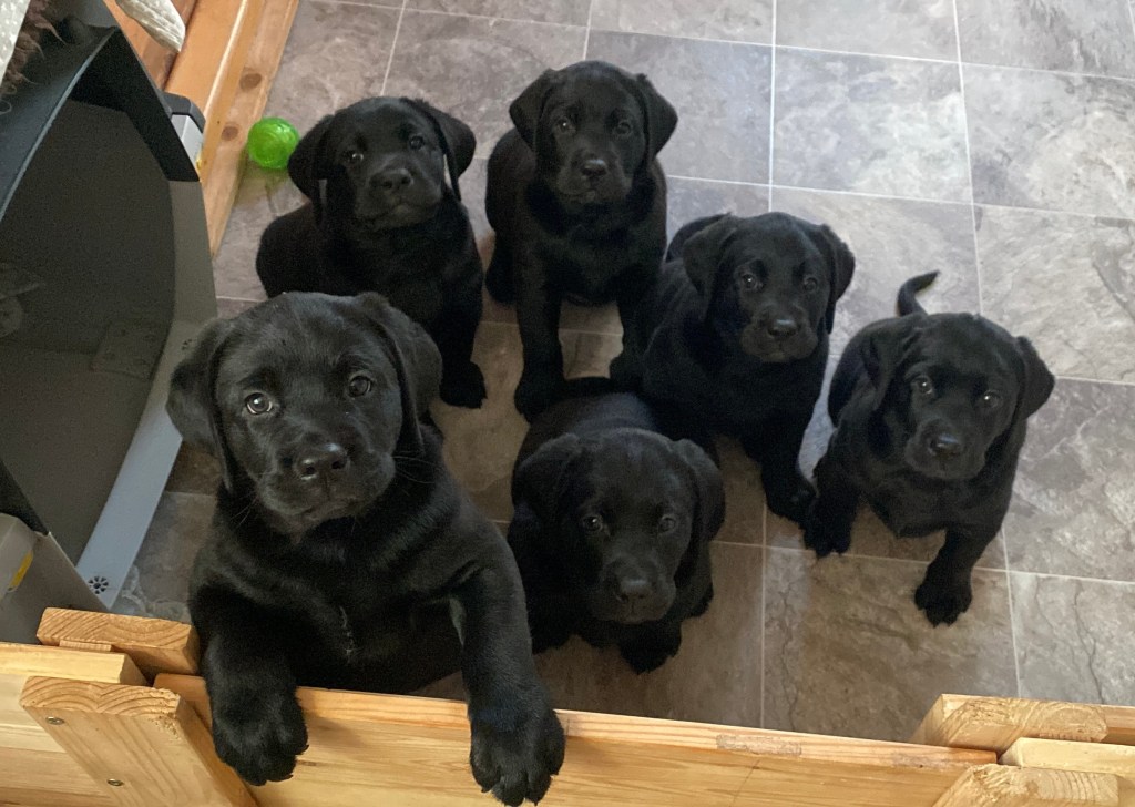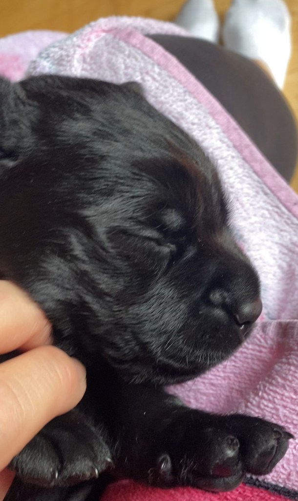 Am 5. Juli 2025 hat uns unsere liebe Malou ein Six-Pack von kleinen Lakritznasen beschert. Vier sehr vitale und kräftige schwarze Rüden und zwei ebenfalls schwarz-glänzende Mädels bereichern unseren Tageslauf – und ehrlich gesagt, nehmen diesen ziemlich ein ;).