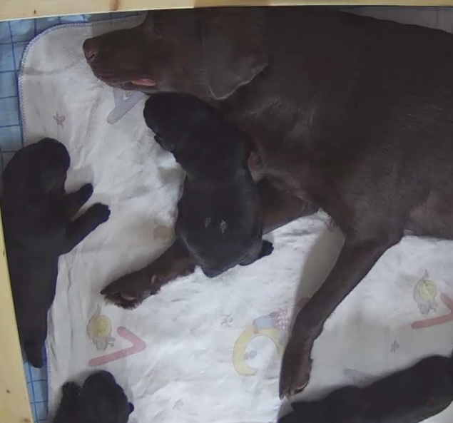 Der Morgen nach der Geburt ist für alle anstrengend. Für die Malou wegen der hervorragenden Arbeit die sie geleistet hat und für die kleinen Racker die alles über sich ergehen lassen mussten und anschließend sofort mit Saugen beschäftigt waren. Das letztere gefühlt dauernd. Geduldig putzt und säugt, säugt und putzt – ach ja, putzt und säugt die geduldige Malou und ist ganz hingerissen von ihrem Nachwuchs.