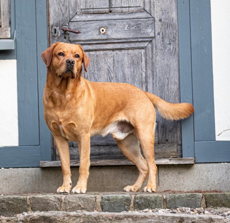 Lasse ist ein charmanter Rüde und lebt mit weiteren zwei Rüden mit einer Familie im Haus und sein freundliches Wesen ist sehr einnehmend. Auch seine Bewertungen sind sehr gut: „Vorzügliches Bild, korrekt im Stand und in der Bewegung‘. Seine Untersuchungen sind ebenfalls HD A und ED 0 beidseits, OCD frei. Seine Gen-Nachweise sind alle top und frei von jeglichen Erbkrankheiten.