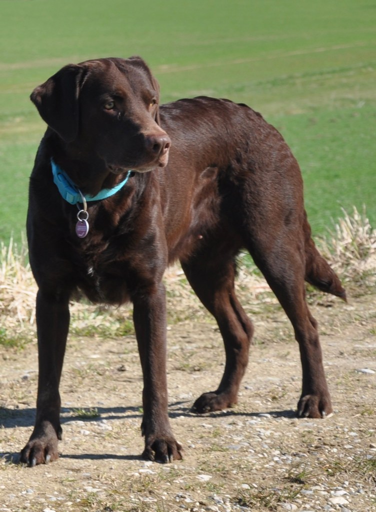 Das haben wir nicht bereut. Sie hat ein sehr aufgewecktes und neugieriges Wesen, ist überaus schnell im Lernen und hat eine tolle Auffassungsgabe. Oft reicht nur zugucken bei anderen, um zu wissen was von ihr verlangt wird. Dazu ist ihr ‚Will To Please‘ sehr ausgeprägt und sie hat ein absolutes Apportiertalent. Egal was, aber vor allem ihr heiß geliebter Frisbee, den sie wenn machbar aus der Luft pflückt, ist ihre tollste Belohnung (von allem Fressbaren mal abgesehen, aber das ist halt Labrador 😉 …). Ihre Nase ist untrüglich, nichts entgeht ihr. Such- und Versteckspiele liebt sie und auch wenn es manchmal ewig dauert, aufgeben gibt es bei ihr nicht (außer sie muss).
